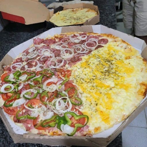 Sabor Da Pizza 40 Cm:mussarela Queijo E Presunto Com Cebola + Pizza 25 Cm: Brigadeiro + Flexa