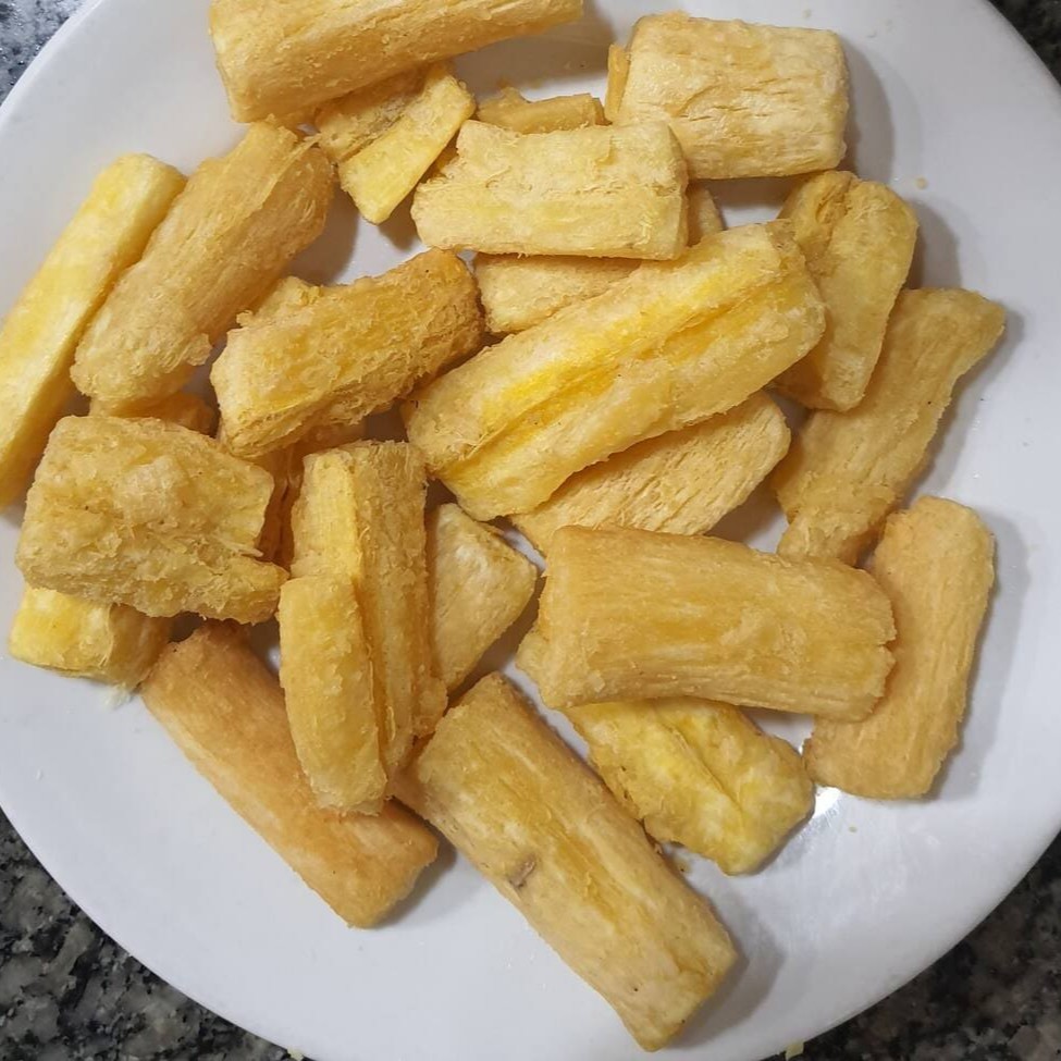 Acompanhamento; arroz, feijão, farofa e batata fritas.