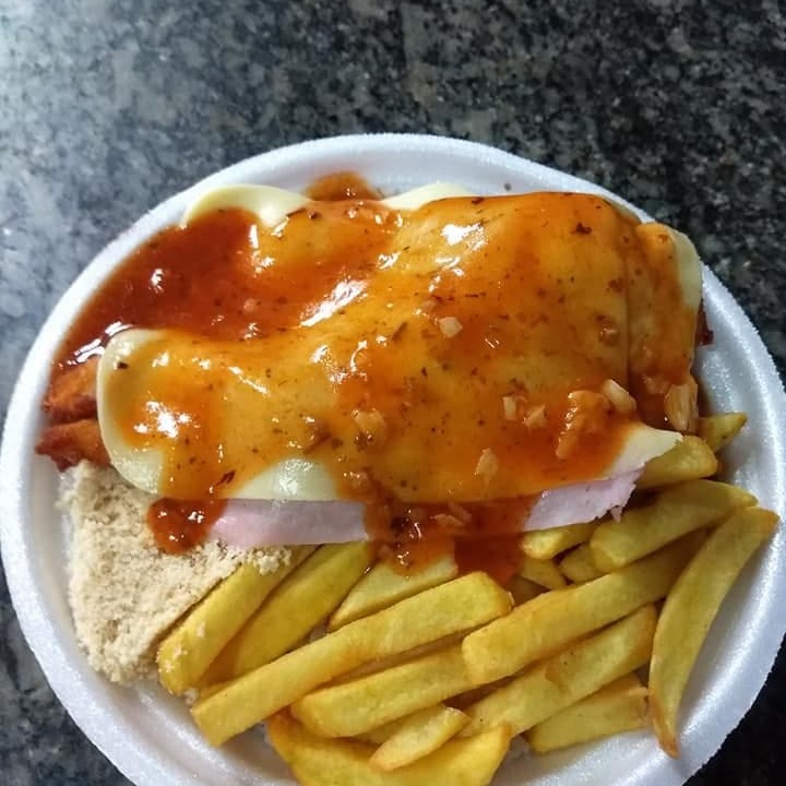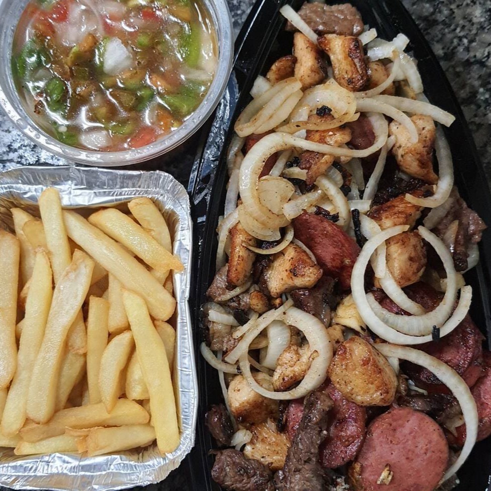 Acompanhamentos: Contra file, file frango, calabresa, farofa, batata frita e molho a campanha.