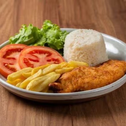 Filé de frango grelhado, arroz, feijão e os complementos