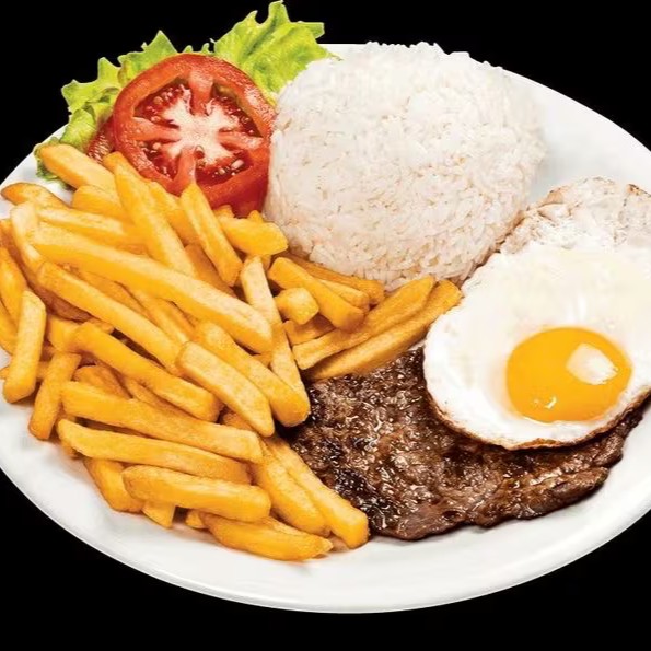 Arroz, feijão, (fritas ou batata palha)