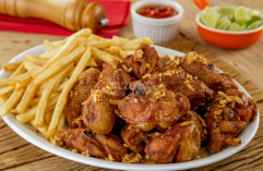 Frango a passarinho com batata frita
