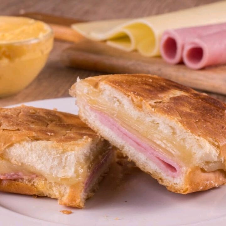Pao de forma ,queijo e presunto.