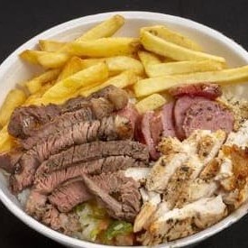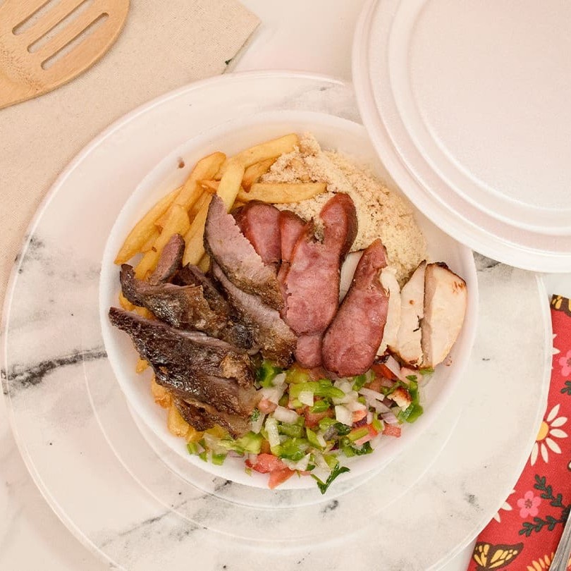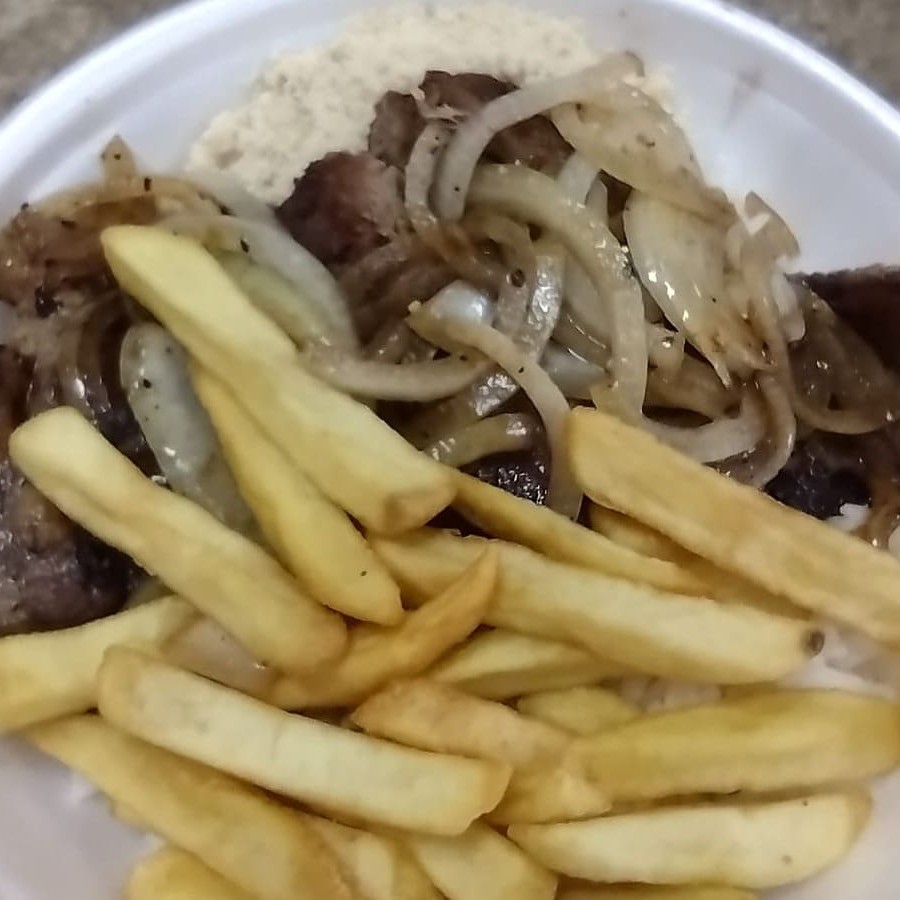 Acomp: arroz, feijão, farofa, molho e fritas.