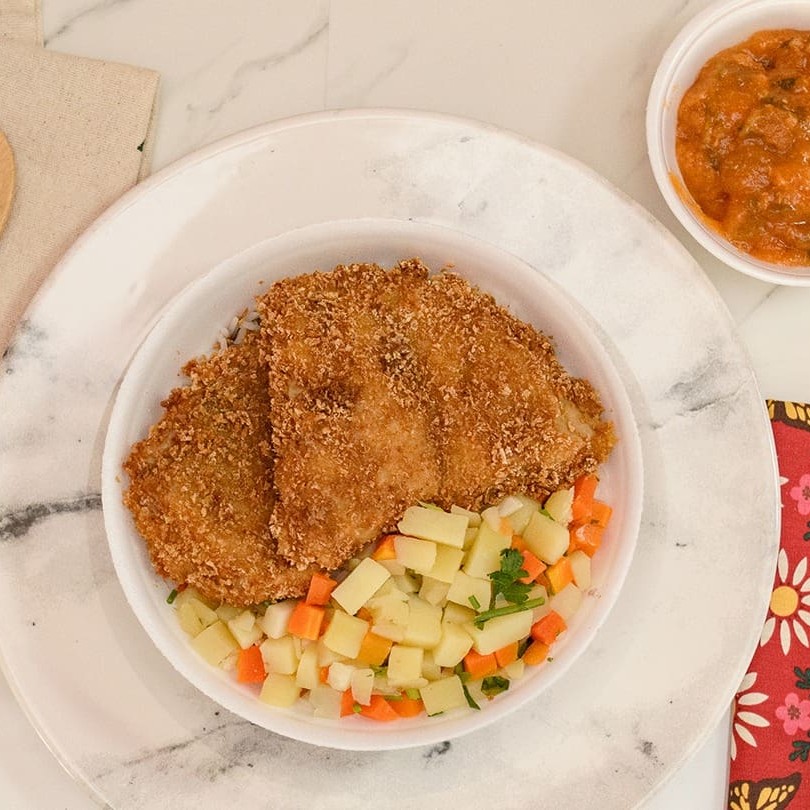 Filé De Peixe Crocante Com Com Pirão E Mix De Legumes