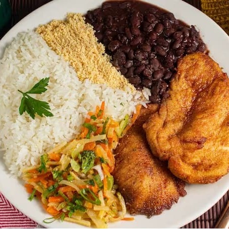 Filé de Frango Crocante à Milanesa. Acompanha arroz, feijão, farofa e mais uma guarnição a sua escolha. Tags: Frango à milanesa, grelhado, marmita, fritas, quentinhas, batata, coxa, sobrecoxa, combo, casal, família, perto de casa, promoção, cupom de desconto, promo, oferta, off, 0800, taxa grátis.