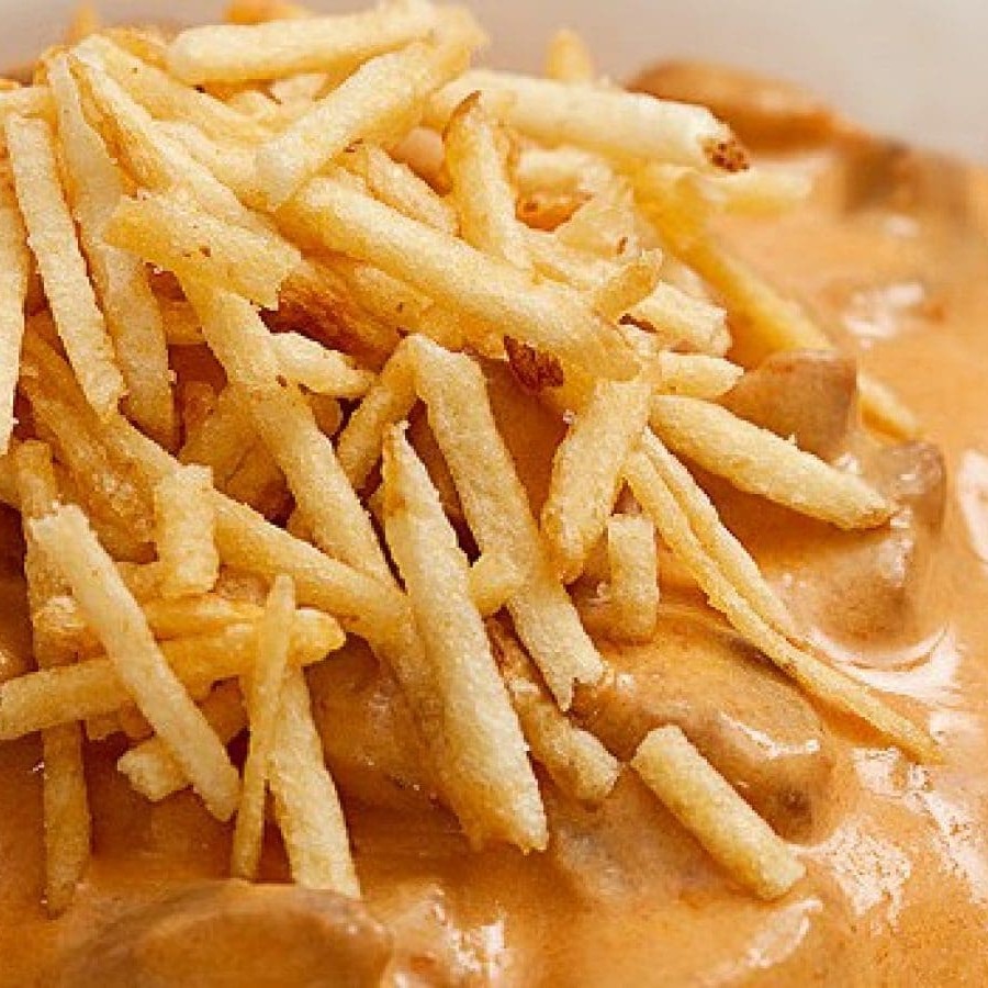 Delicioso Strogonoff de Carne e Arroz Branco. Tags: Carne, strogonoff, grelhado, marmita, fritas quentinhas, batata, coxa, sobrecoxa, combo, casal, família, perto de casa, promoção, cupom de desconto, promo, oferta, off, 0800, taxa grátis.