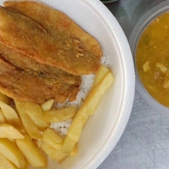 Marmita Posta De Corvina ( Media 200grs ), Arroz (200grs), Pirão(200grs), Batata Frita(150grs) - Refeicão Individual