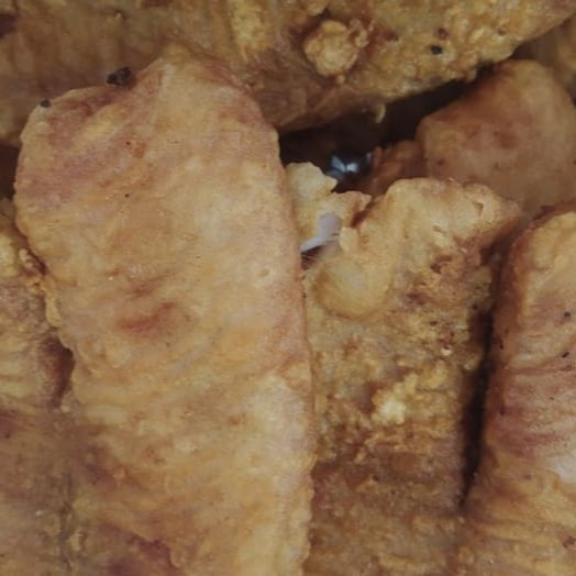 Orção de filé de peixe empanado, temperado no ponto certo, crocante por fora e macio por dentro.(Sem espinhos)