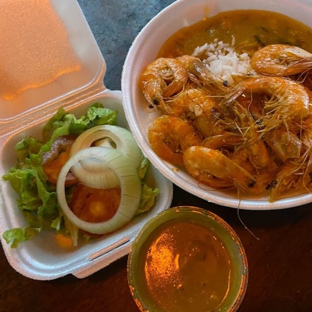 Camarão Alho e Óleo, Arroz Branco, Pirão, Molho de Camarão e Salada Verde