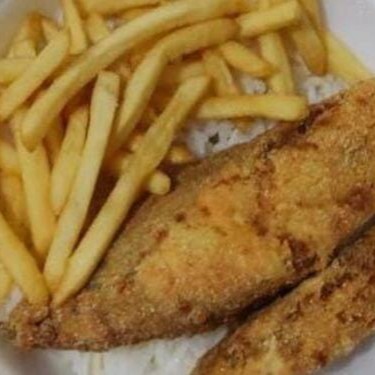 Delicioso Gurjão de Peixe (peixe zero espinha), Arroz e Batata Frita