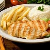 Um delicioso filé de frango grelhado na chapa. Com arroz, feijão, farofa de ovos e fritas (a lá carte)