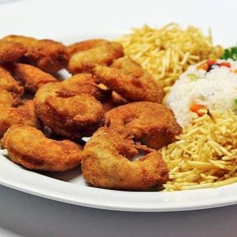 camarão empanado frito no óleo vegetal, com molho tátaro.
