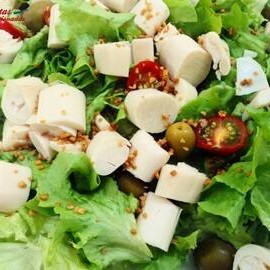 Ervilha, milho verde, manga, tomate, alface, azeitona, palmito e queijo e outros mais