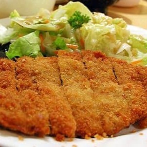 Um saboroso peito de frango empanado frito no óleo vegetal.