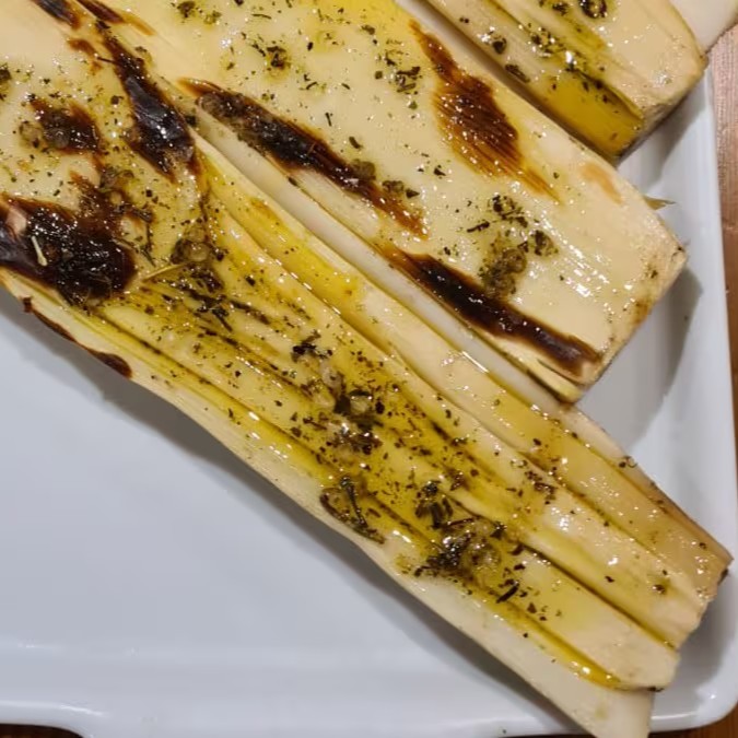 Porção de palmito pupunha grelhado na churrasqueira