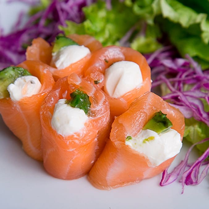 5 Lâminas de salmão com cream cheese sem arroz.