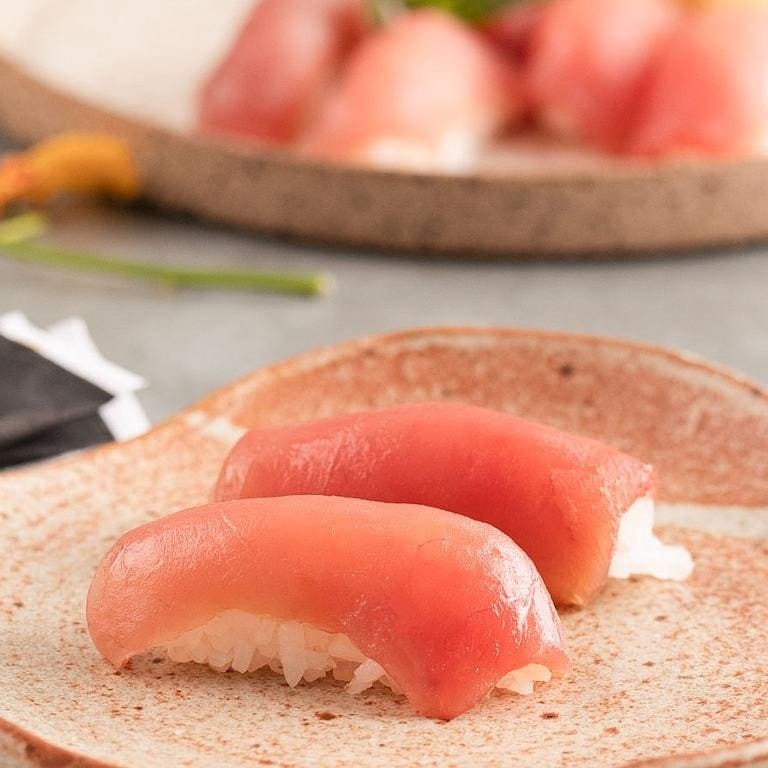 É uma bolinha de arroz temperado com molho shari combinado com o atum