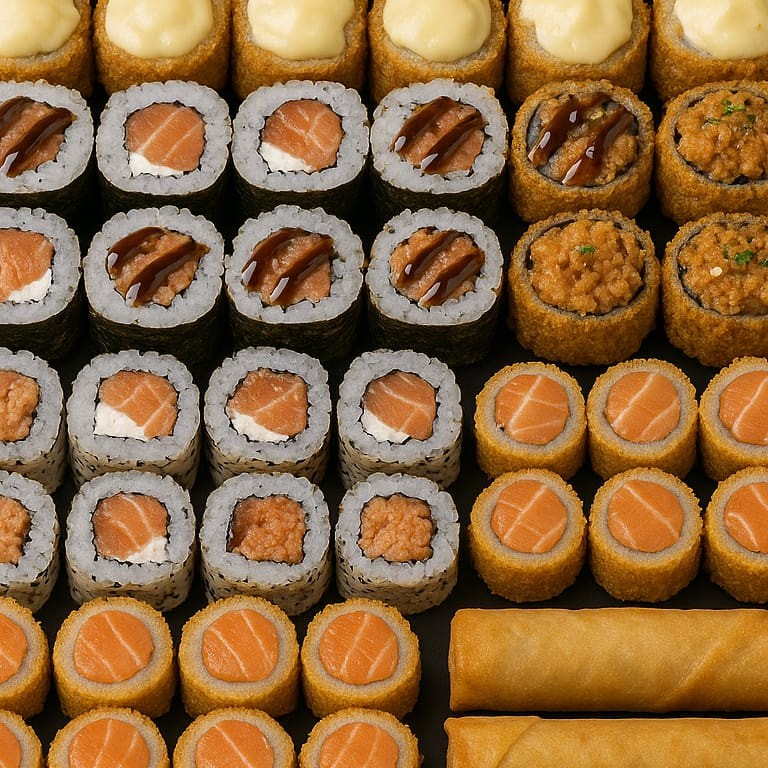 São mais de 18 opções de rolls , múltiplos de 10 pra vc escolher e montar seu festival !!