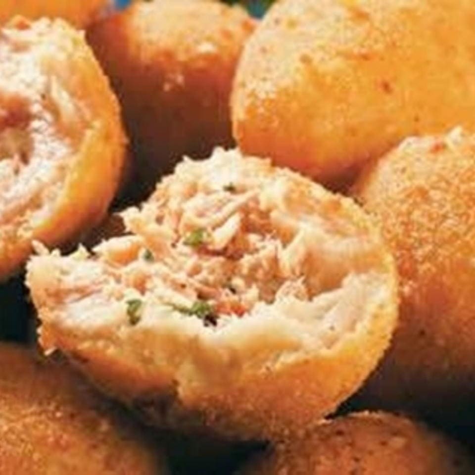 Bolinho de salmão empanados na farinha panko, cream cheese, queijo parmesão e tempero especial mineiro.