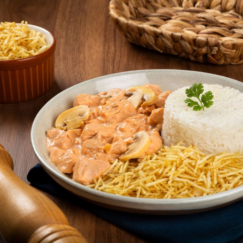 Marmita - Estrogonofe De Frango Com Arroz E Batata Palha Para 2 Pessoas