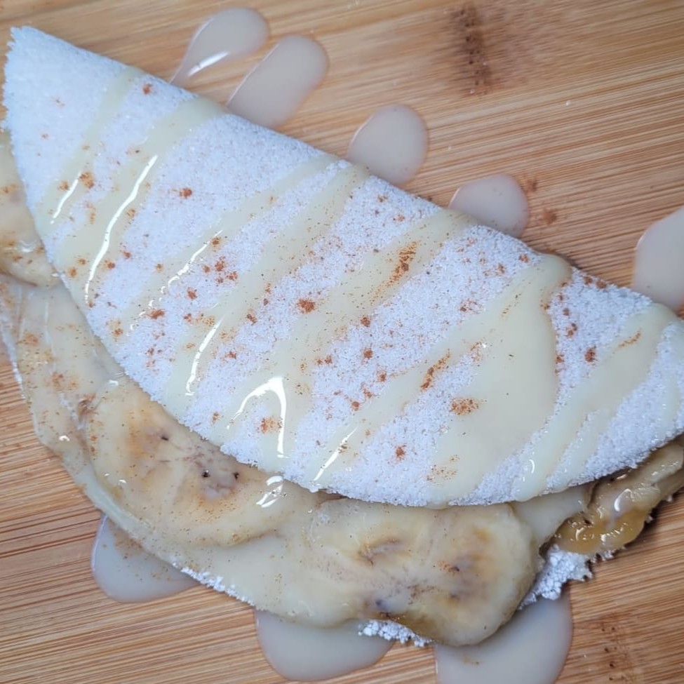 Goma de tapioca artesanal, coco fresco e um delicioso doce de leite cremoso. Nessa opção você escolher entre a goma de tapioca ou massa da crepioca.
