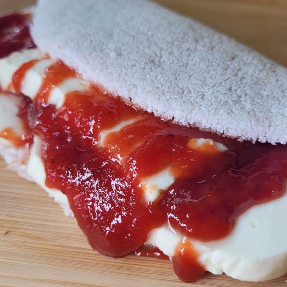 Goma de tapioca artesanal, frango desfiado , palmito e cream cheese
