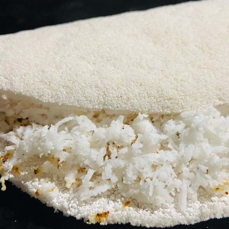 Goma de tapioca artesanal,coco fresco e leite condensado. Nessa opção você pode escolher entre a goma de tapioca ou massa de crepioca.