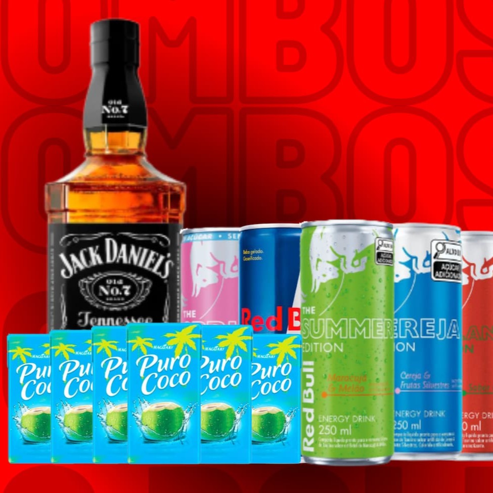 Jack Daniels 1l + 5 Red Bull + 6 Gelo De Coco