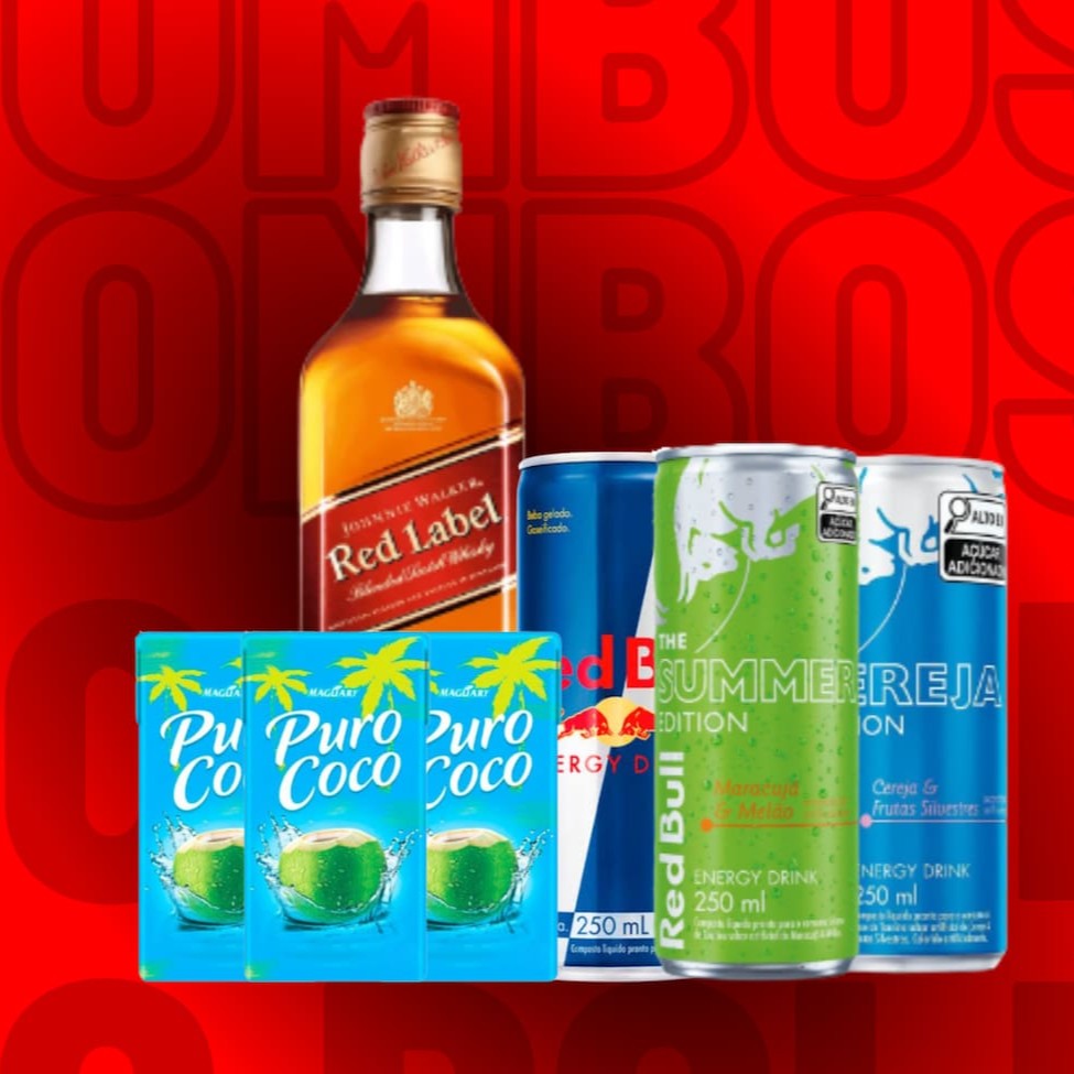 Red Label 500ml + 3 Red Bull + 3 Gelo De Coco