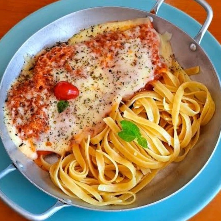 Parmegiana De Frango + Talharim Ao Alho E Óleo