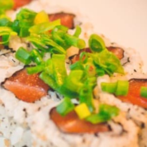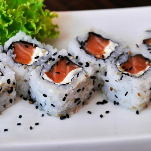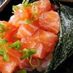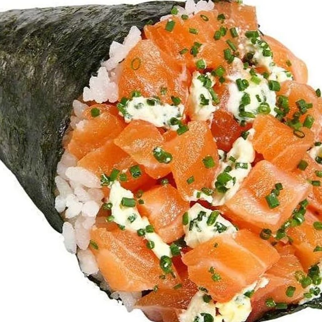 Arroz, Salmão, Cream Cheese, Teriaki e Cebolinha.