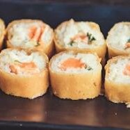 Arroz com recheio de salmão, Cream cheese e cebolinha.