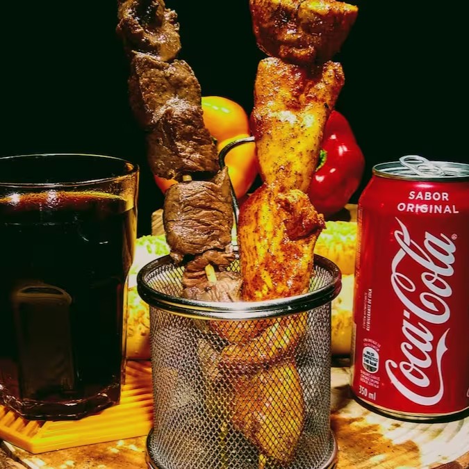 Aproveite o Happy Hour com o combo de 2 espetos deliciosos de carne e frango, acompanhados de uma Coca-Cola em lata. Saboreie a suculência da carne grelhada e a textura do frango, enquanto desfruta do sabor refrescante da bebida gelada. Essa é a combinação ideal para tornar seu happy hour memorável.