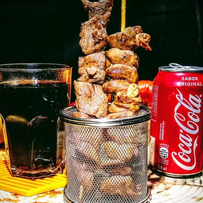 Aproveite o Happy Hour com um combo irresistível: 2 espetos deliciosos de coração e carne acompanhados de uma Coca-Cola em lata. Saboreie as carnes suculentas e grelhadas, enquanto desfruta da bebida gelada. Essa é a combinação perfeita para relaxar, socializar e aproveitar o momento.