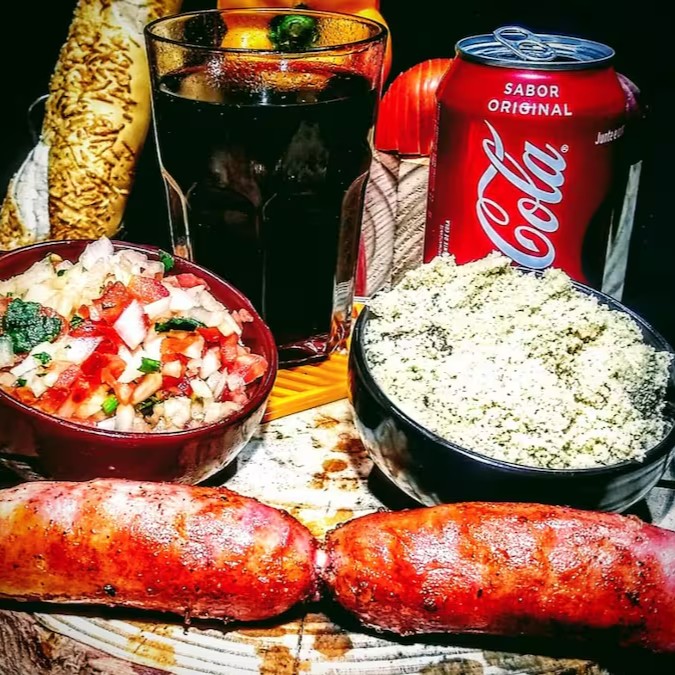 Aproveite o Happy Hour com o saboroso Espeto de Linguiça Toscana. Delicie-se com a suculência e o tempero irresistível dessa iguaria, acompanhada de uma deliciosa farofa crocante, um vinagrete refrescante e uma Coca-Cola gelada em lata. Essa combinação é perfeita para descontrair, relaxar e saborear um momento especial de happy hour.