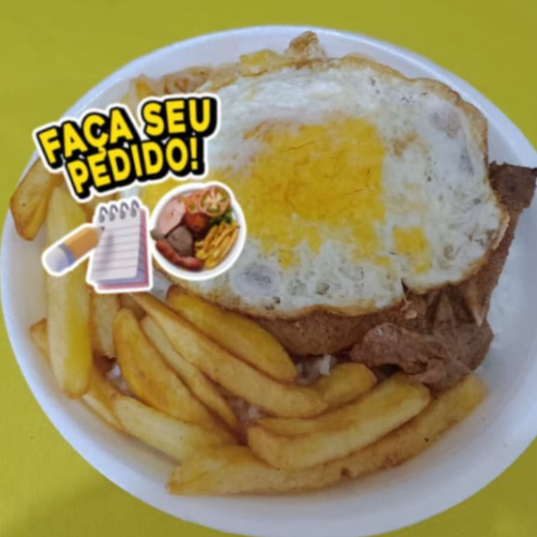 Acompanha arroz , feijão , Batata frita e farofa.