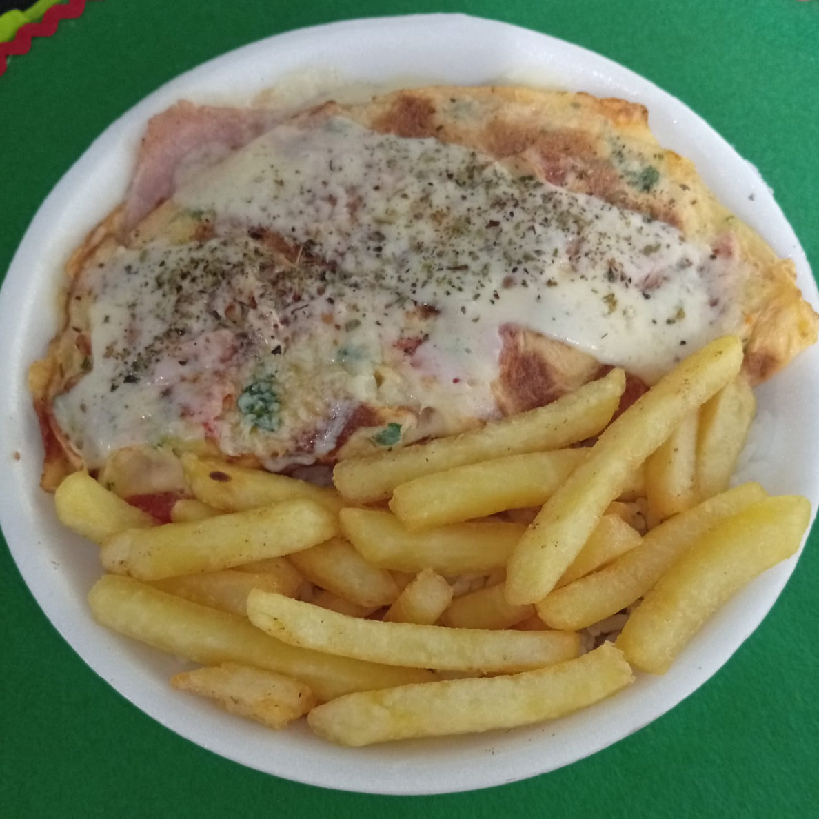 Delicioso Omelete De Queijo E Presunto E Fritas.