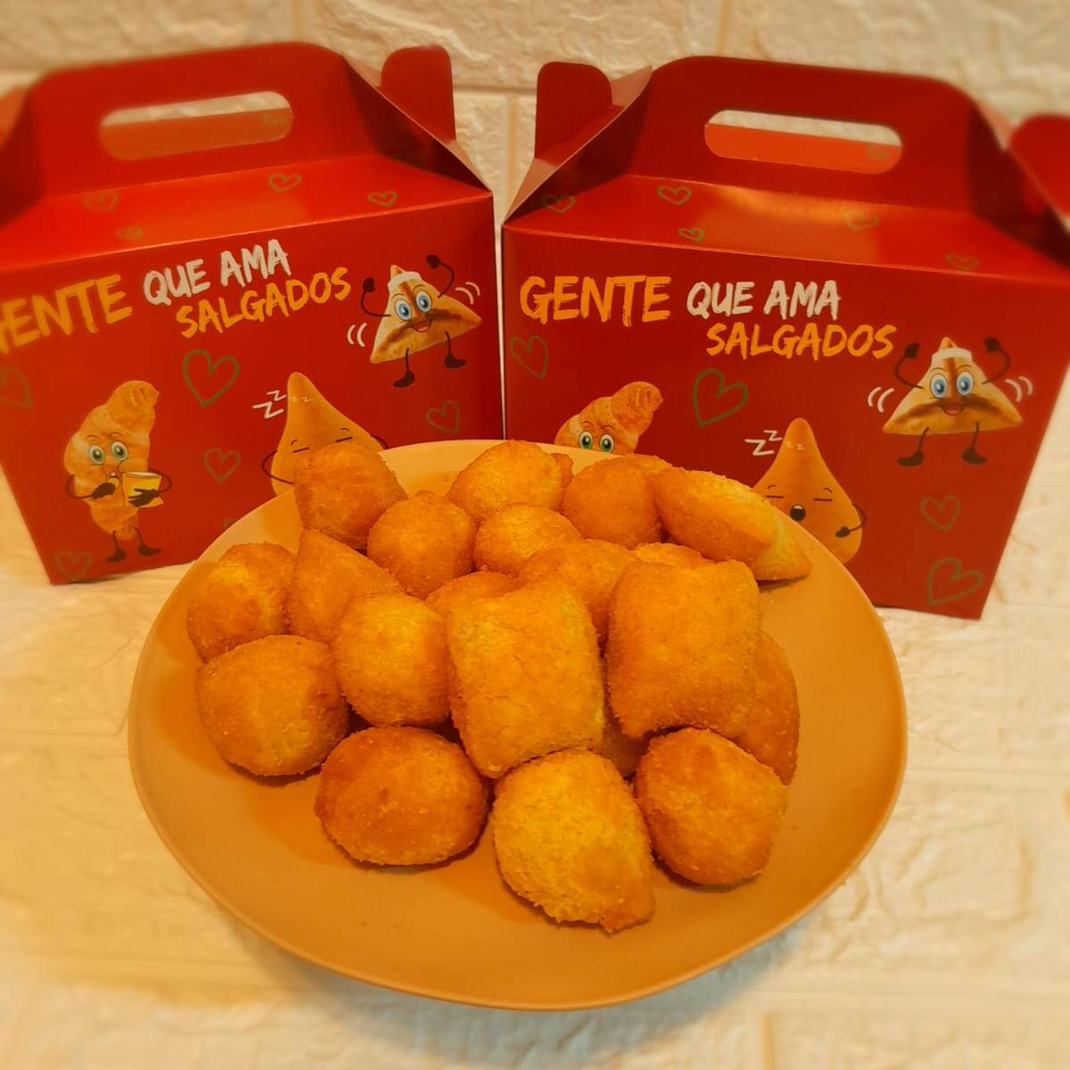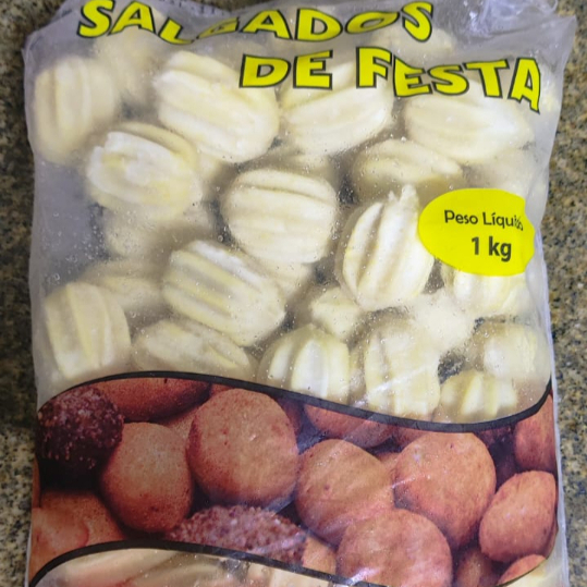 Pacote contém 1kg contendo 50 salgados de 20 gramas cada.