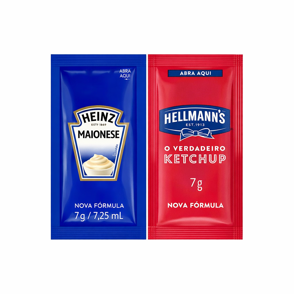 2 Sachês de Maionese Heinz e 2 Sachês de Ketchup Hellmann´s