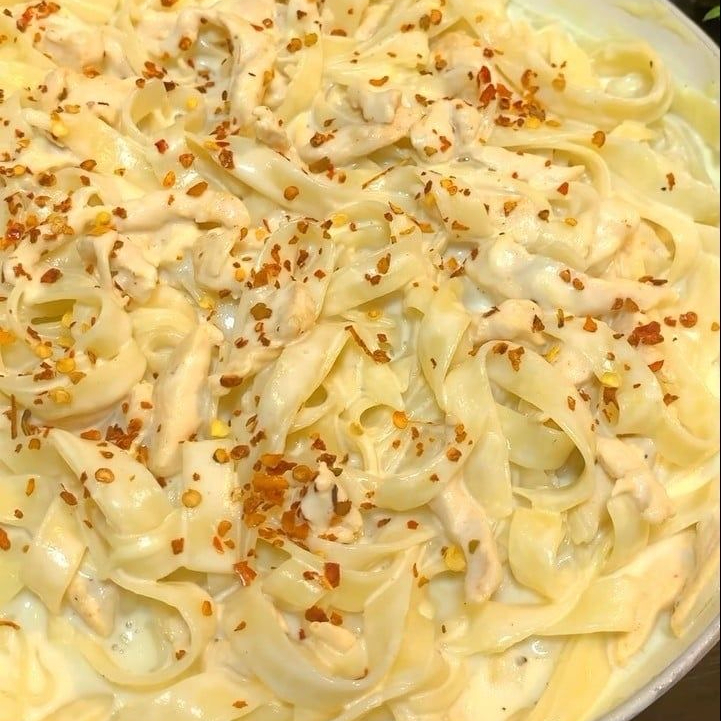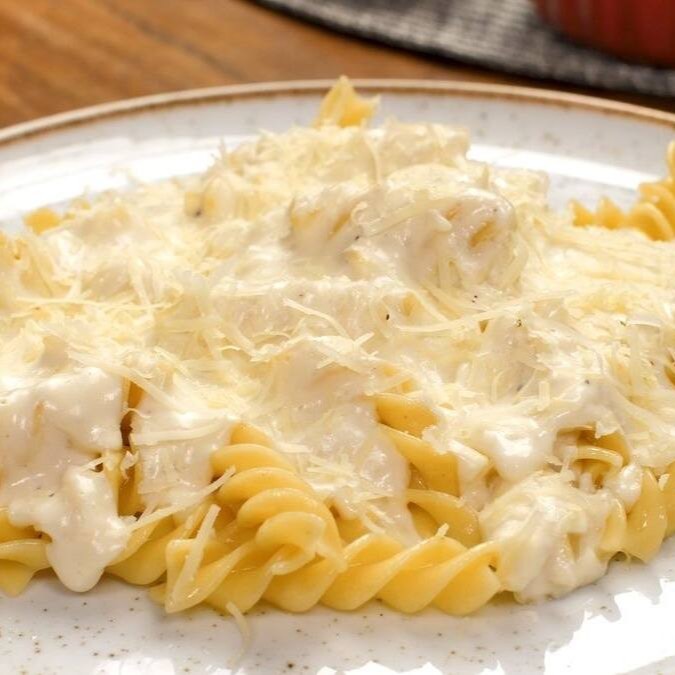 Talharim envolvido em um molho branco cremoso, acompanha frango em pequenos cubos macios e suculentos, bem distribuído pela massa. Finalizado com alho torrado crocante, trazendo um toque especial de sabor e textura. Um prato irresistível. (500g)
