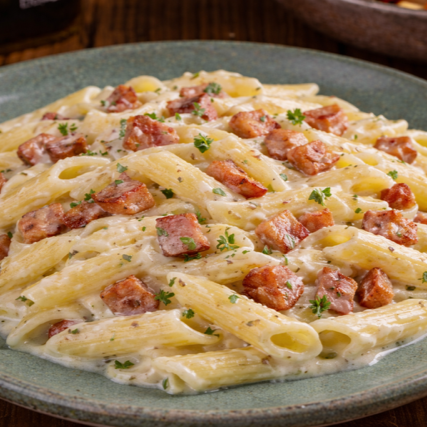 Penne Ao Molho Branco E Bacon