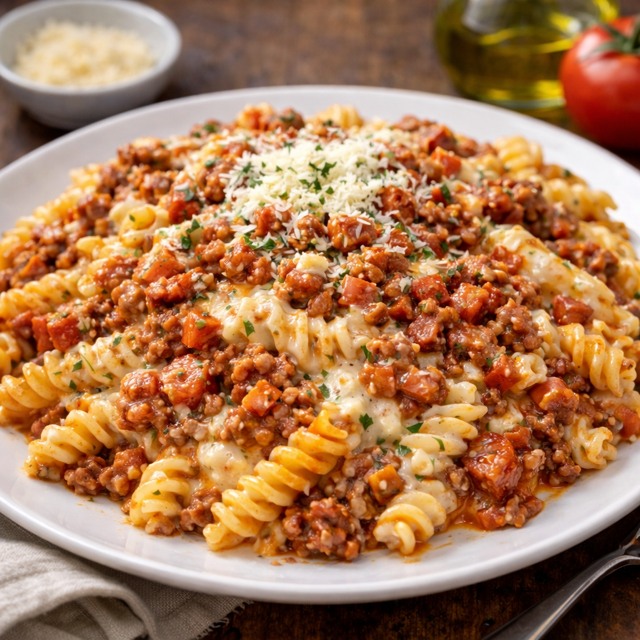 Massa parafuso cozida no ponto perfeito, combinada com o melhor dos dois mundos: molho bolonhesa artesanal caseiro, bem temperado e um molho branco irresistível. Finalizado com queijo parmesão, é um prato saboroso, ideal para quem ama cremosidade sem abrir mão do sabor marcante da carne. (500g)
