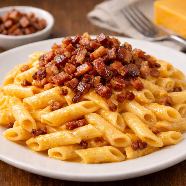 Penne Ao Molho Cheddar Com Bacon