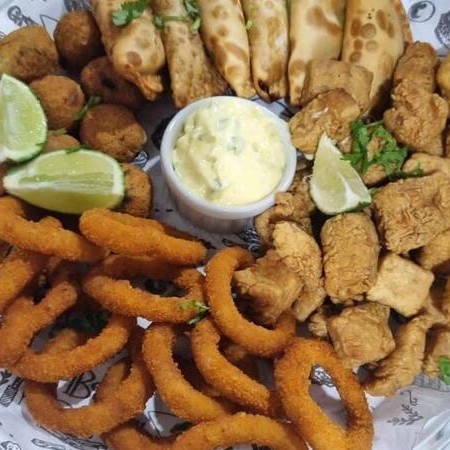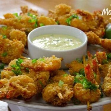 Porção de camarão empanado acompanha molho tártaro