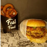 Pão, 2 carnes, bacon, 2 mussarelas, alface, tomate, ketchup, maionese de bacon e batata palha