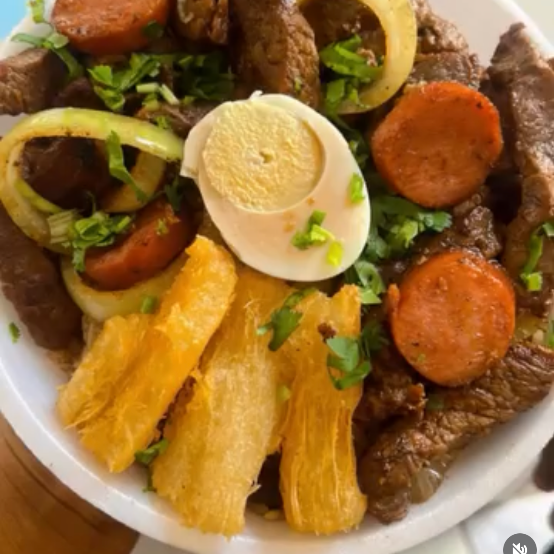 Arroz com feijão ,bife,carne seca ,baicon,calabresa, aipim ,torresmo e ovo