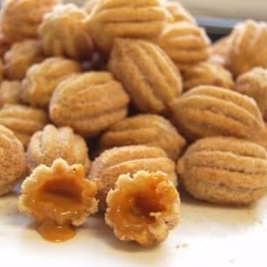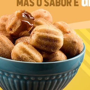 25 mini churros de festa recheado com doce de leite, com canela e açúcar