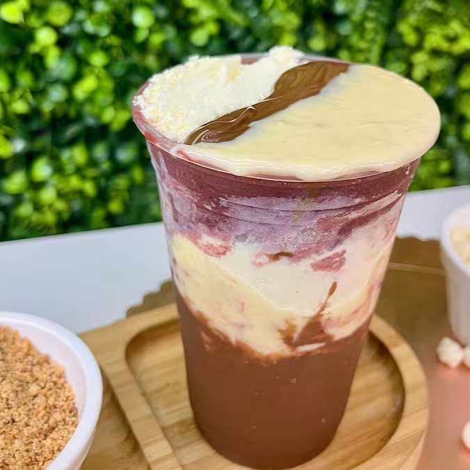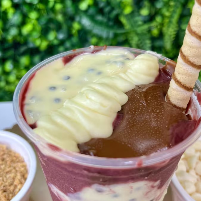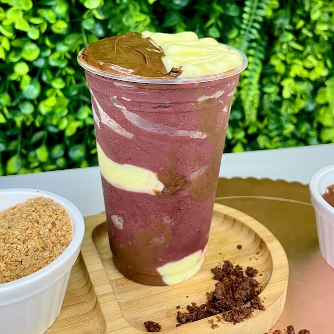 Uma combinação que vai direto ao ponto: açaí bem cremoso, creme de avelã suave e o toque doce do leitinho. Tudo isso junto numa explosão de sabor que conquista já na primeira colherada. Refrescante, doce e irresistível. Difícil mesmo vai ser parar de comer!