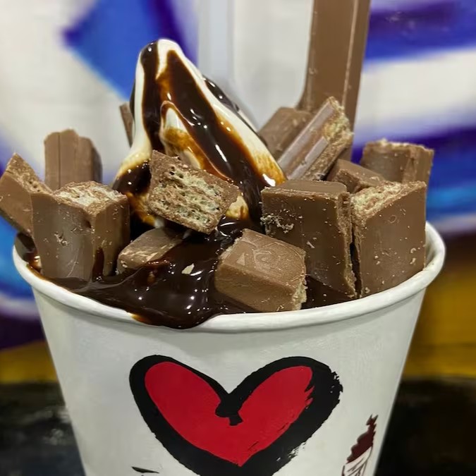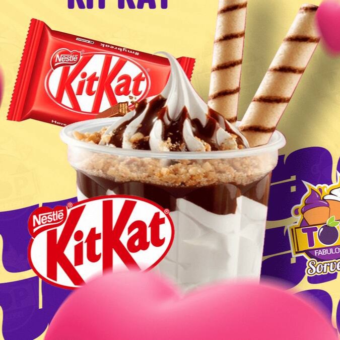 Monte o seu Top Sundae Kitkat! Escolha o sabor do sorvete e adicione pedaços crocantes de Kitkat para uma combinação irresistível. Uma sobremesa personalizada que une o sorvete cremoso com o sabor e a textura do Kitkat.